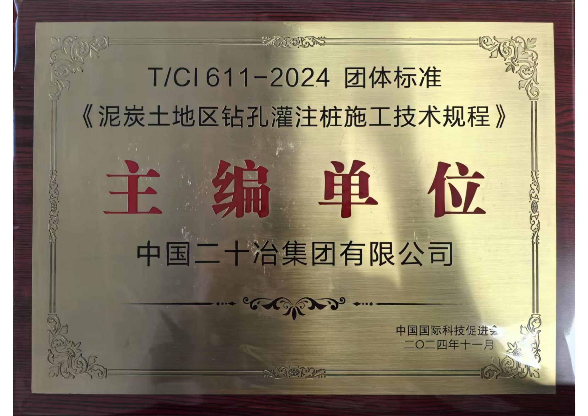On December 25th, the group standard “Technical Specification for Construction of Bored Piles in Peat Soil Areas” (T/CI611-2024), compiled by China MCC20, was officially approved and released.