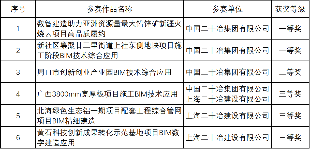 9月19日,由中國冶金建設協(xié)會主辦的第七屆冶金建設行業(yè)BIM大賽結(jié)果揭曉,中國二十冶共獲獎6項,其中一等獎2項、二等獎1項、三等獎3項。“數(shù)智建造助力亞洲資源量最大鉛鋅礦新疆火燒云項目高品質(zhì)履約”和“新社區(qū)集聚廿三里街道上社東側(cè)地塊項目施工階段BIM技術(shù)綜合應用”兩項成果獲評一等獎。